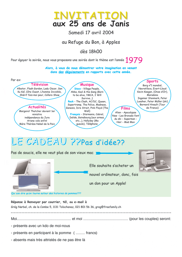 - alinéa 1: Tout invité, si il le souhaite, peut participer au cadeau global qui sera fait à la principale interessée.